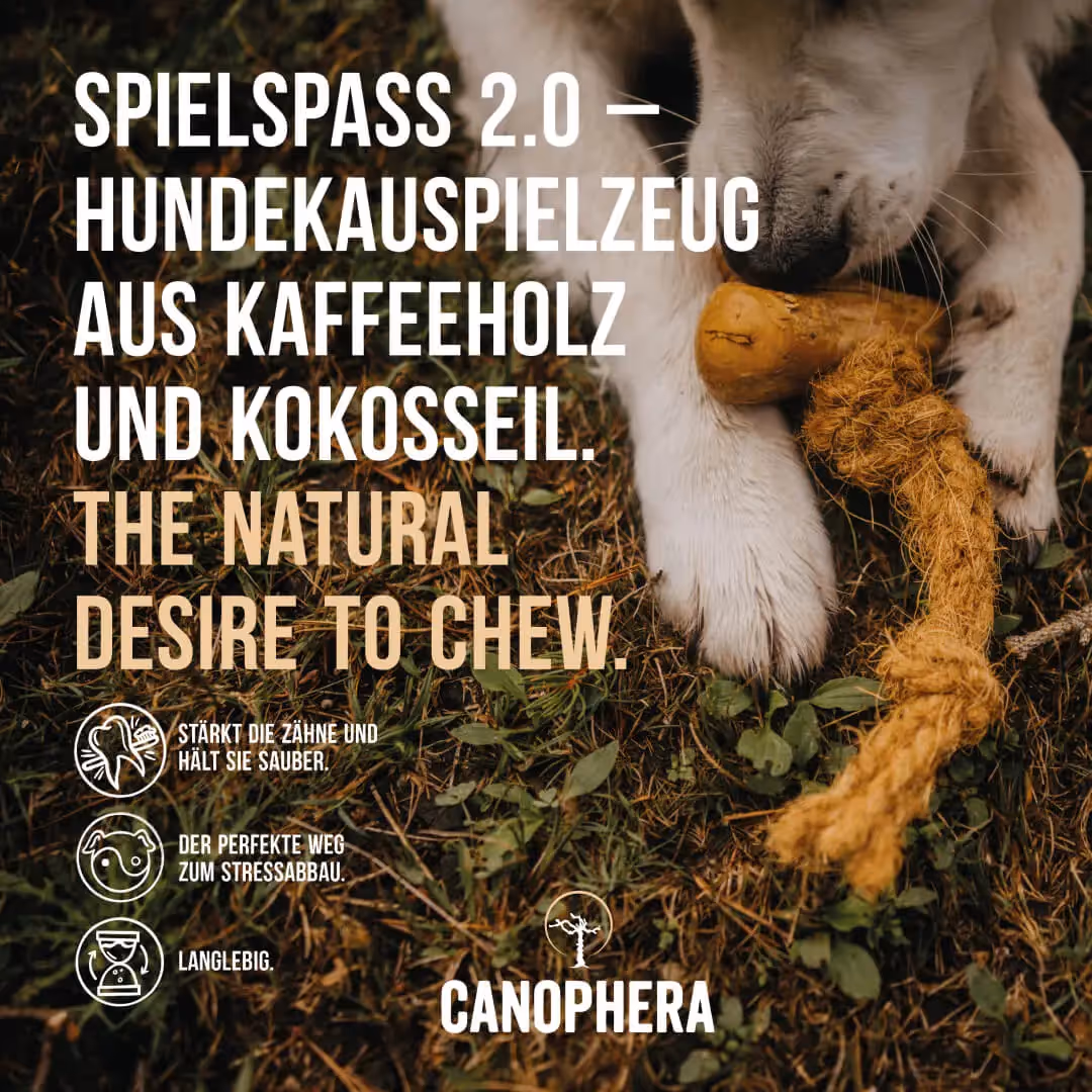Die Kombination der beiden Naturmaterialien bietet deinem Hund ein abwechslungsreiches Kau- und Spielerlebnis. Es kann gut sein, dass dein Hund beginnt, das Seil zu zerknabbern und zu zerreißen – das befriedigt seinen natürlichen Kaudrang, gibt ihm ein Erfolgserlebnis und reinigt zusätzlich die Zähne.